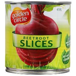 Golden Circle Sliced Beetroot. Slices of juicy beetroot, perfect for in sandwiches, burgers, salads and barbeques. Beetroot is fat free and a good natural source of fibres and antioxidants.